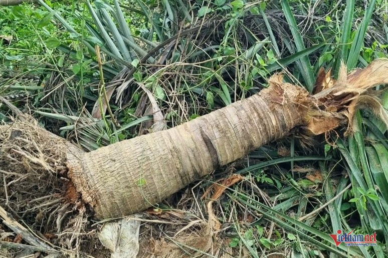 Nhiều cây dừa có đường kính lớn hơn cột nhà cùng các loại cây cau, chuối của gia đình ông Hiệp đều bị voi quật đổ la liệt. Vườn bắp bị phá nát, căn chòi gỗ bị hư hỏng nặng. Xung quanh hiện trường có rất nhiều dấu chân voi lớn, đường kính 30-40cm.