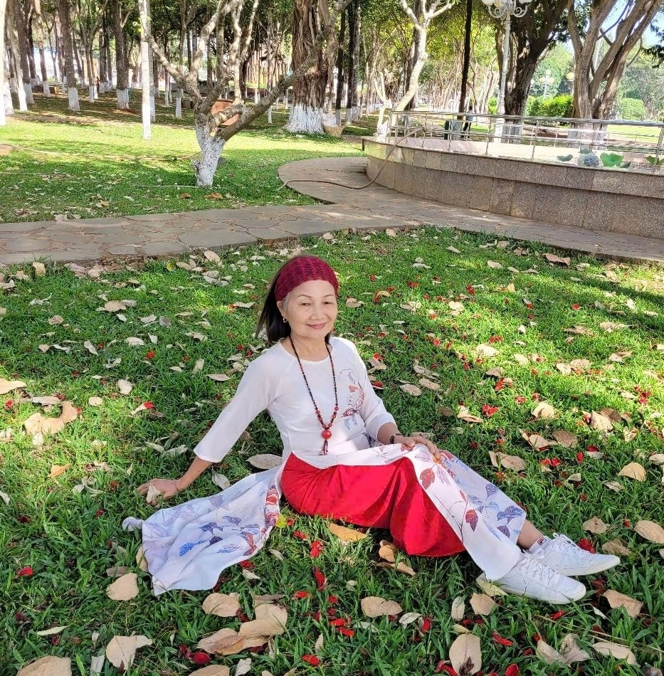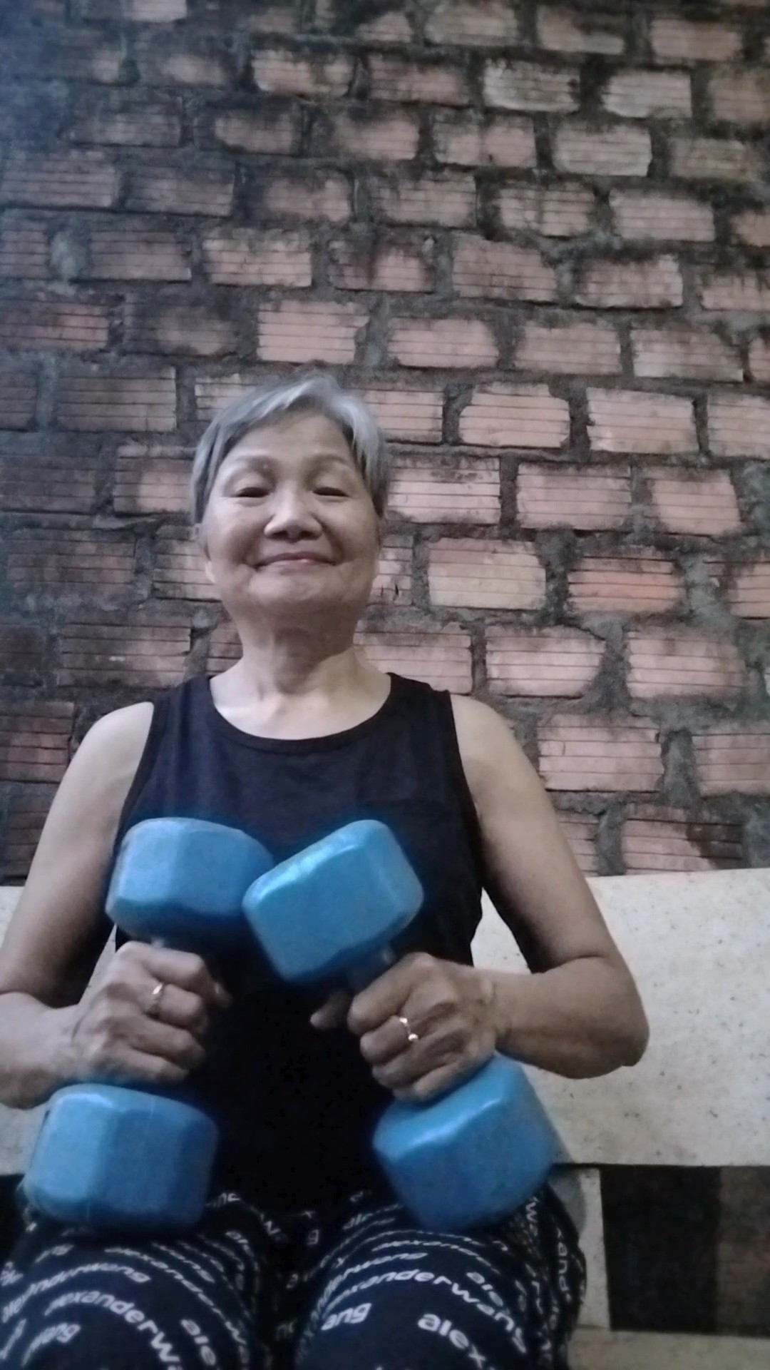 Ban đầu, bà chỉ tập tạ 2kg, nay đã nâng đến 10kg. Nhờ tập luyện kiên trì, bà cảm thấy mình trẻ trung, khỏe mạnh và tràn đầy năng lượng.