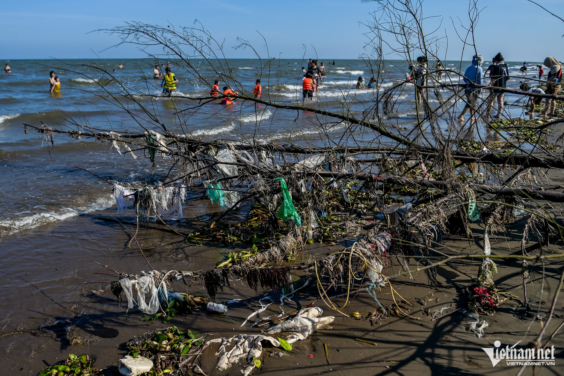 Anh Trần Trung K. (trú tại huyện Trực Ninh, Nam Định) cho biết: "Đây là lần đầu tôi đưa gia đình đến khu vực biển thuộc xã Phúc Thắng để vui chơi, tắm biển. Dù bãi biển có nhiều rác nhưng đã mất công đi rồi, tôi vẫn cố xuống cho con chơi 1 lát. Tôi hy vọng cơ quan chức năng sớm có biện pháp xử lý".