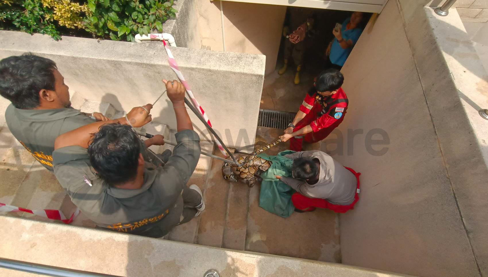 Theo giới chức địa phương, đây là một con trăn cái và nặng tới 60kg. Nó được cho là trườn tới nhà vệ sinh chung cư để tìm nơi làm tổ an toàn.