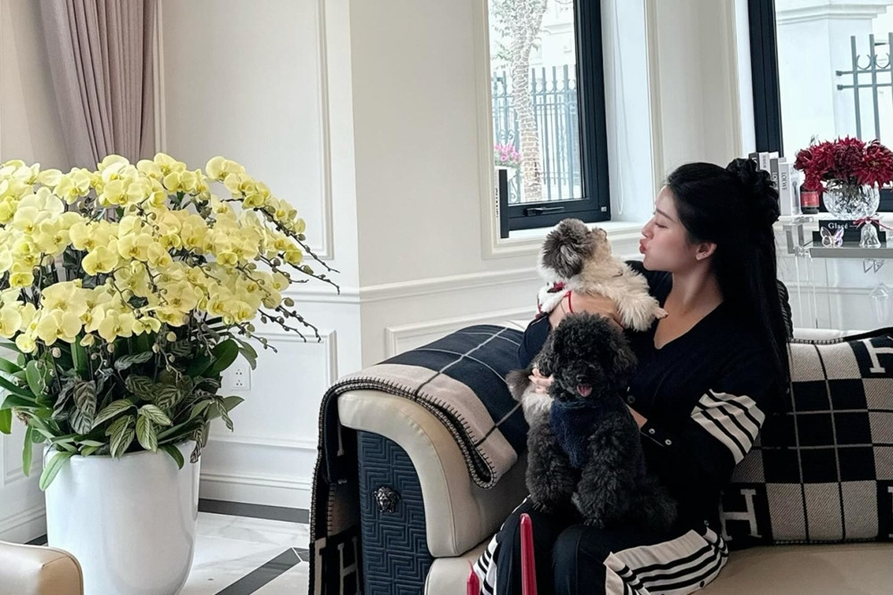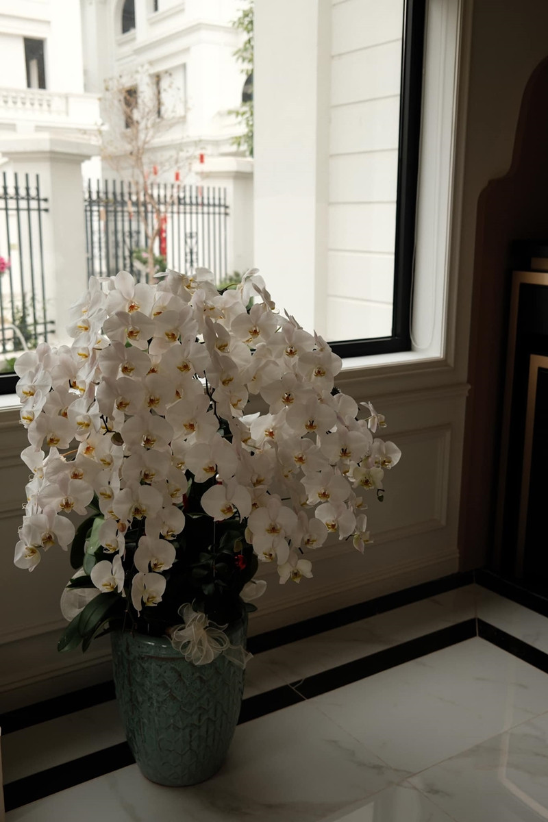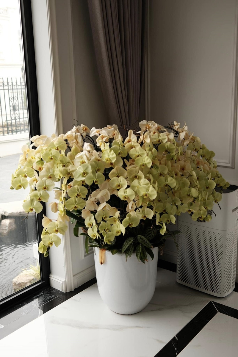 Bên trong biệt thự, Huyền My theo đuổi phong cách nội thất tối giản mang hơi hướng châu Âu. Các món đồ cao cấp được tinh tế phối hợp, tạo nên không gian sống sang trọng. Nhiều chậu địa lan với sắc vàng, trắng được bố trí tại các góc nhà. Với không gian sân vườn rộng rãi, người đẹp thường xuyên tổ chức những buổi tiệc nhỏ tại nhà trong các dịp đặc biệt.