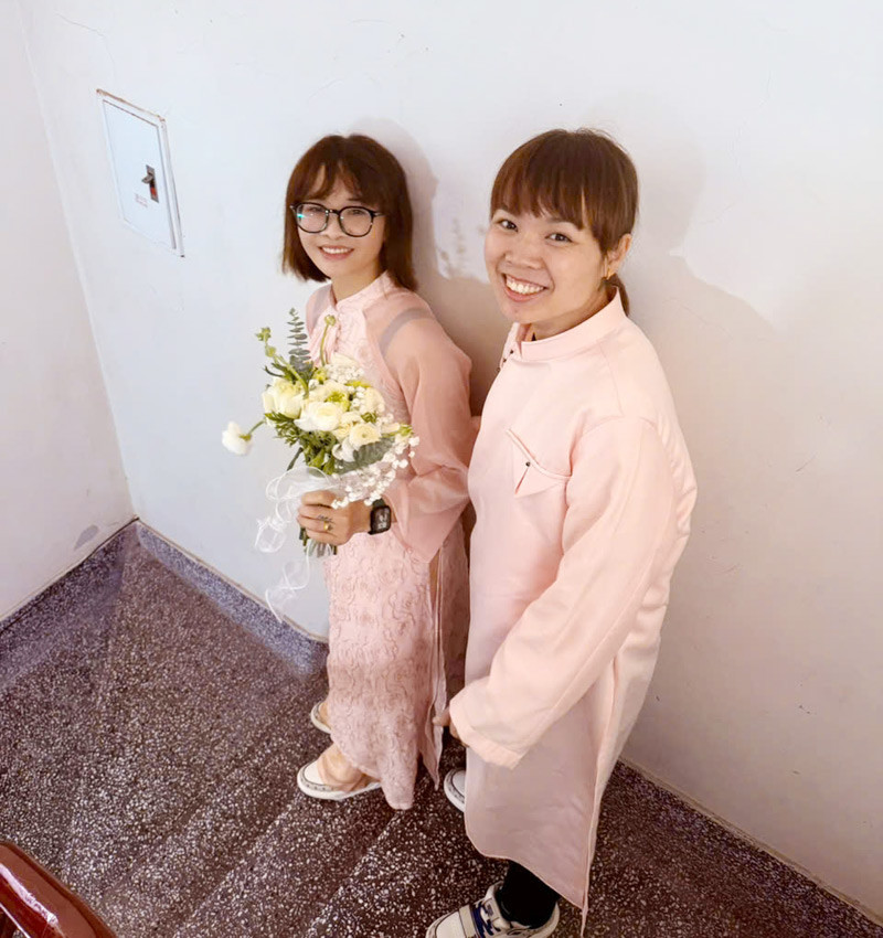 Thơm và Trang biết nhau qua mạng xã hội cách đây nhiều năm nhưng đến tháng 12/2023, khi cùng tham gia một hoạt động của nhóm LGBT, họ mới gặp mặt nhau.