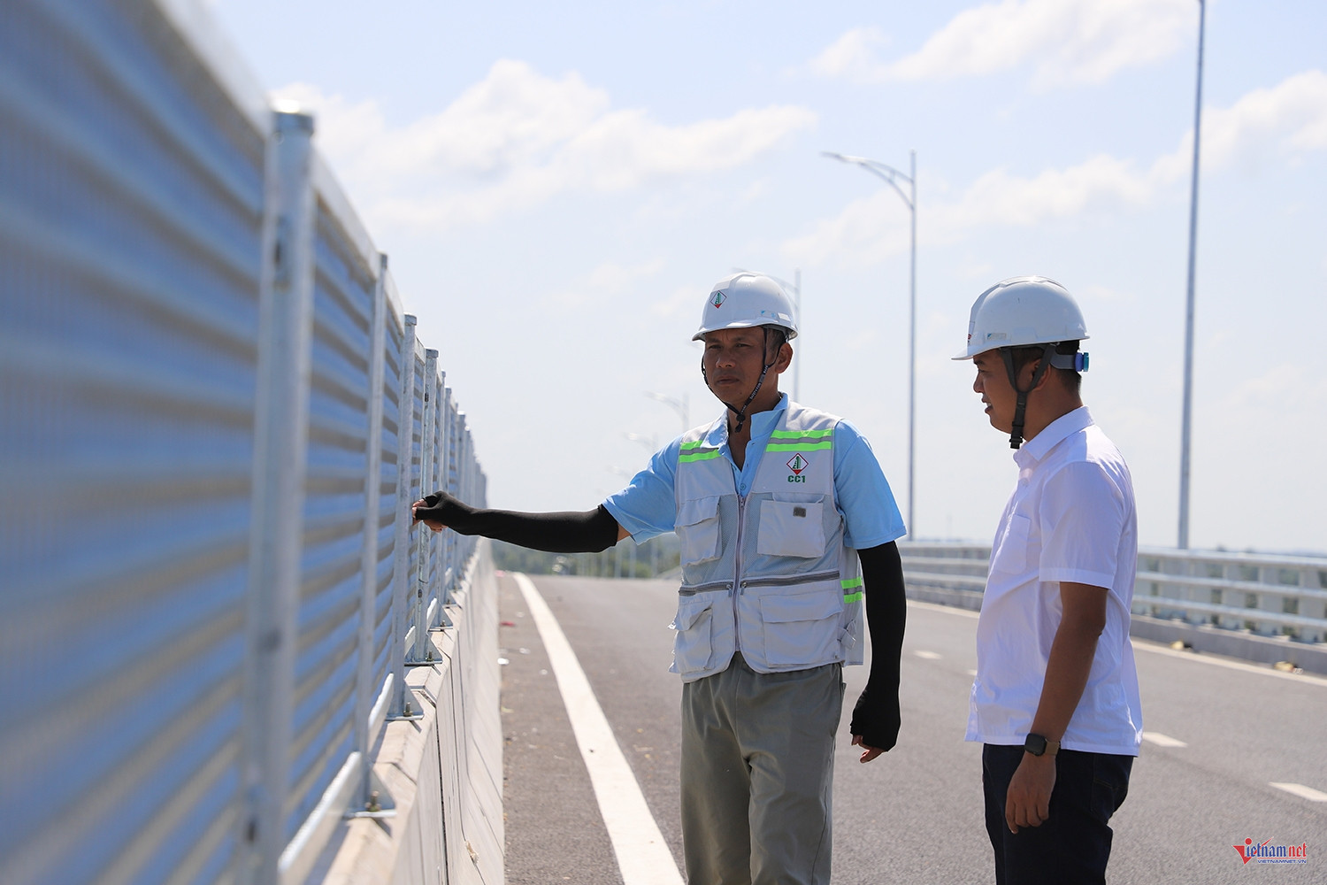 Mặt cầu được thảm nhựa, kẻ vạch, lắp dải phân cách, lưới cản quang. Trong khi đó, hệ thống chiếu sáng, biển báo tiếp tục hoàn thiện.