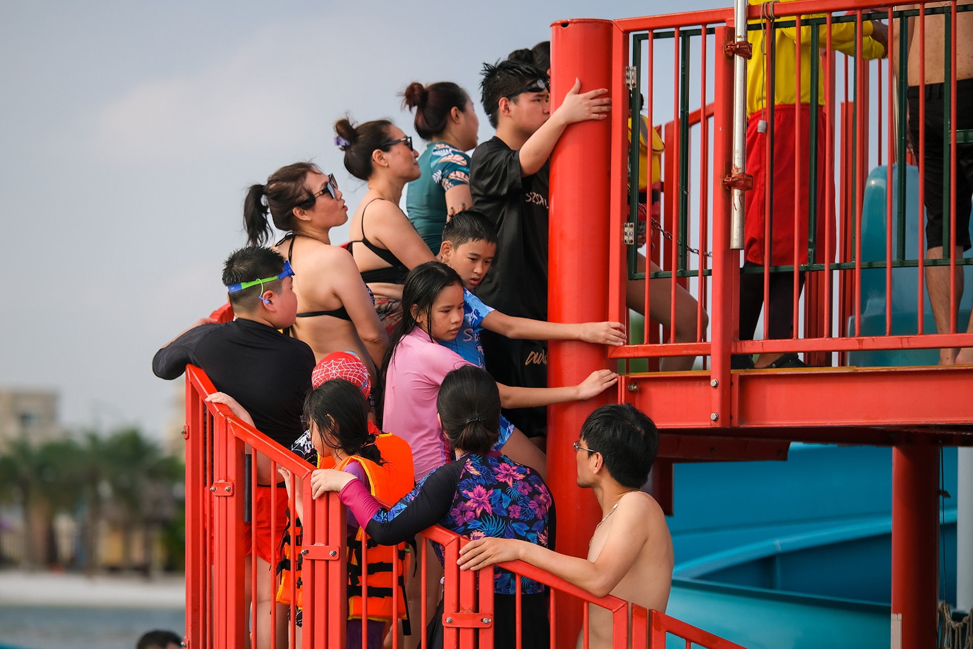 Nhiếp ảnh gia trẻ chia sẻ, bãi biển rất rộng, người đông nhưng vẫn dư sức chứa nên không có cảnh chen chúc, quá tải. Người lớn, trẻ nhỏ thoải mái vui đùa, thư giãn.