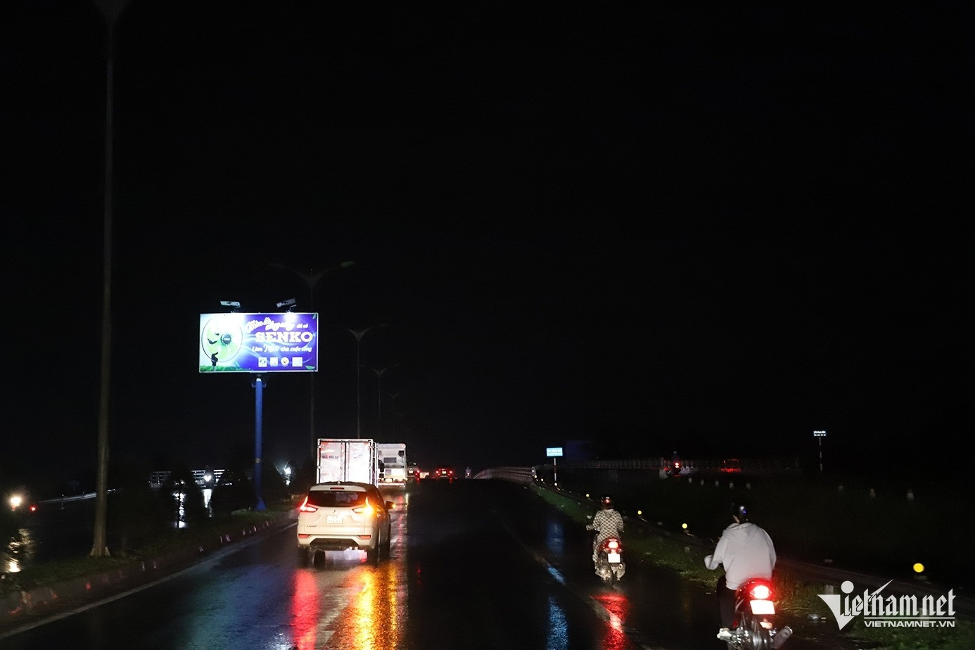 Tranh thủ tấp vào lề mang áo mưa, anh Nguyễn Quốc Thái (ngụ TP Cần Thơ) cho biết, thiếu sáng dẫn đến hạn chế tầm nhìn, rất mong cơ quan chức năng quản lý tuyến đường nhanh chóng khắc phục tình trạng trên.