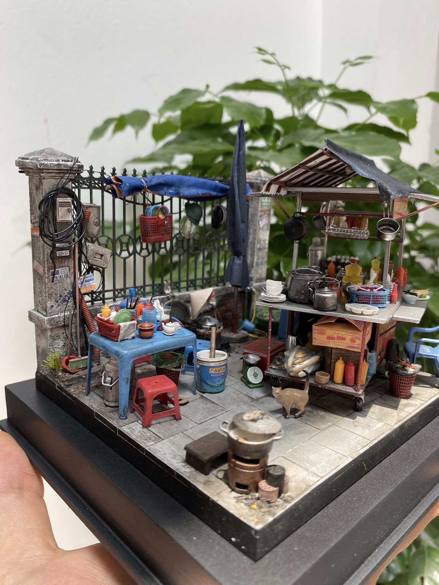 Hành trình đến với mô hình thủ công của Cường bắt đầu từ một khoảnh khắc tình cờ. Trong một lần lang thang trên phố cổ để thư giãn, Cường dừng chân, uống ly trà đá ở một quán ven đường.