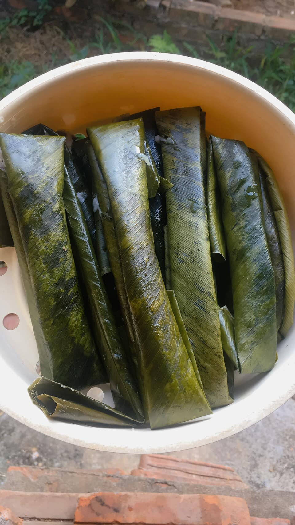 Khi bánh dậy mùi thơm, bóc không còn dính lá là bánh chín. Lúc đó, bánh được vớt ra, xếp thành chồng ngay ngắn để không bị méo mó hình dáng sau khi hấp.