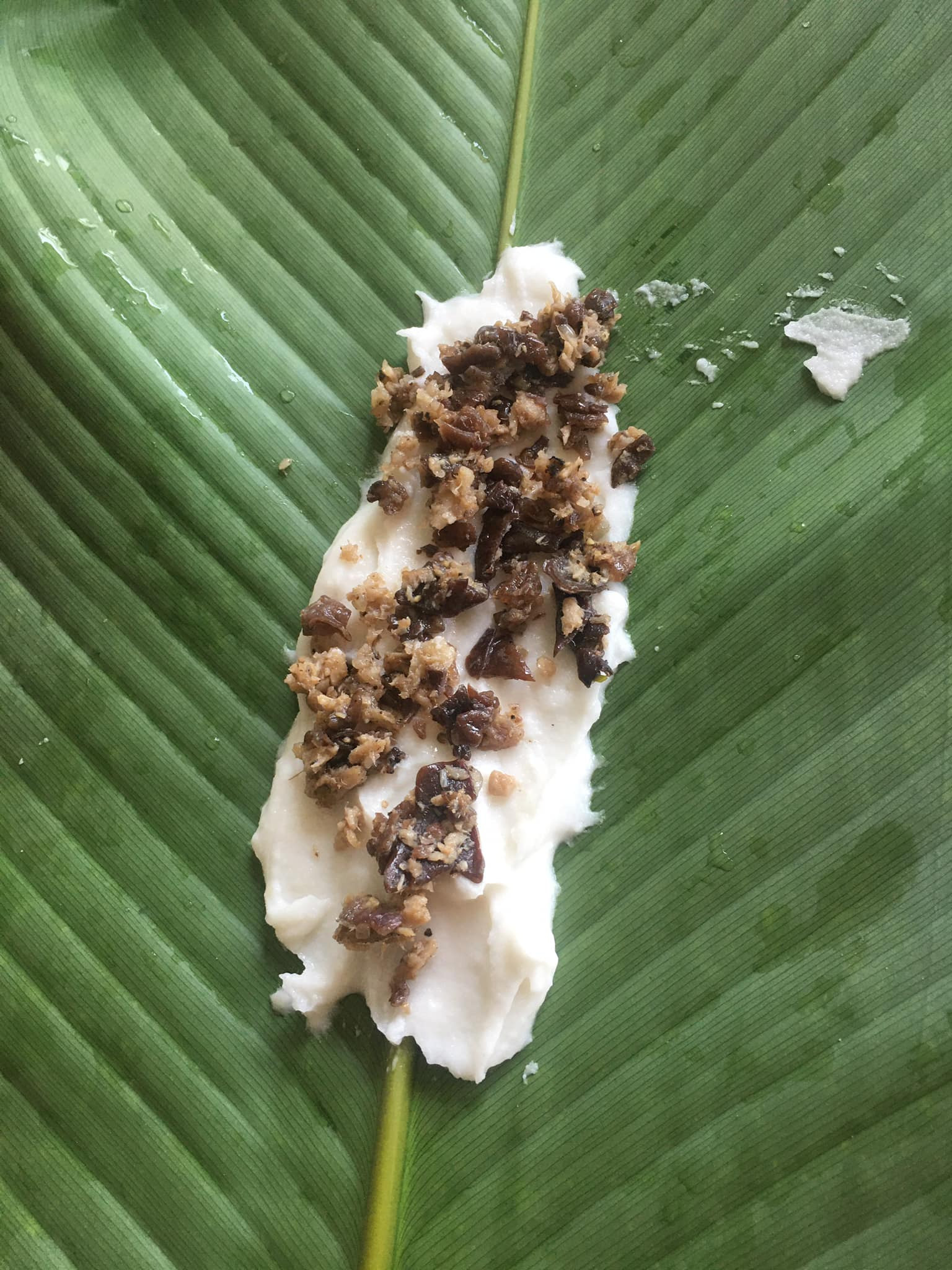 Đến công đoạn gói, người ta quét bột vào lá, thêm nhân vào giữa rồi gập lá lại, miết cạnh, gấp thành hình thon dài. Bánh gói xong thì đem luộc hoặc hấp. Thông thường, người ta chọn hấp để bánh không bị ngấm nước, ăn ngon hơn.