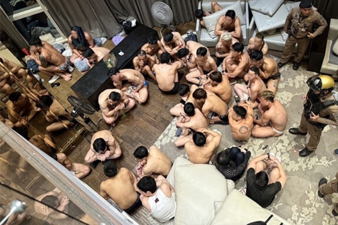 Đột kích vào lúc 1h30 ngày 8/12, cảnh sát phát hiện hàng trăm người đàn ông Thái Lan và nước ngoài đều mặc đồ lót giống nhau. Lực lượng chức năng thu giữ một số lượng ma túy tổng hợp (ecstasy) và chất gây nghiện (ketamine). Tất cả những người này đều bị đưa về đồn cảnh sát Thonglor.