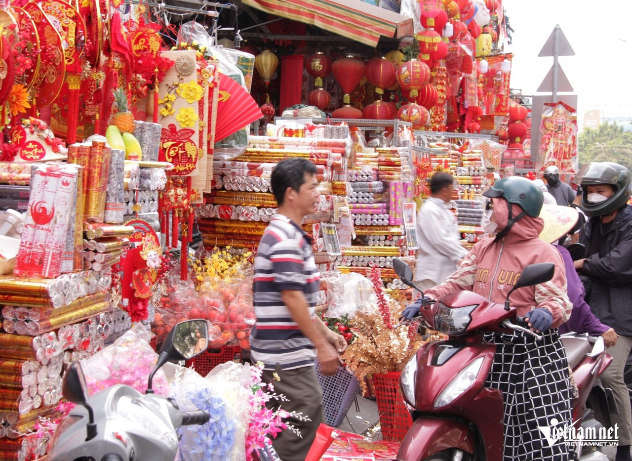 Trong khi đó, do nhiều việc vào cuối năm, công ty cho nghỉ trễ, chị Thảo (35 tuổi) đến đường Hải Thượng Lãn Ông mua đồ trang trí Tết trễ hơn mọi năm.