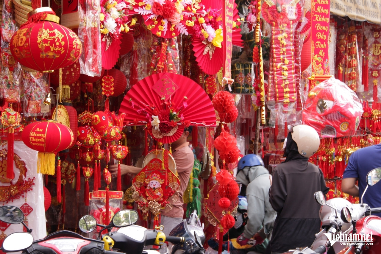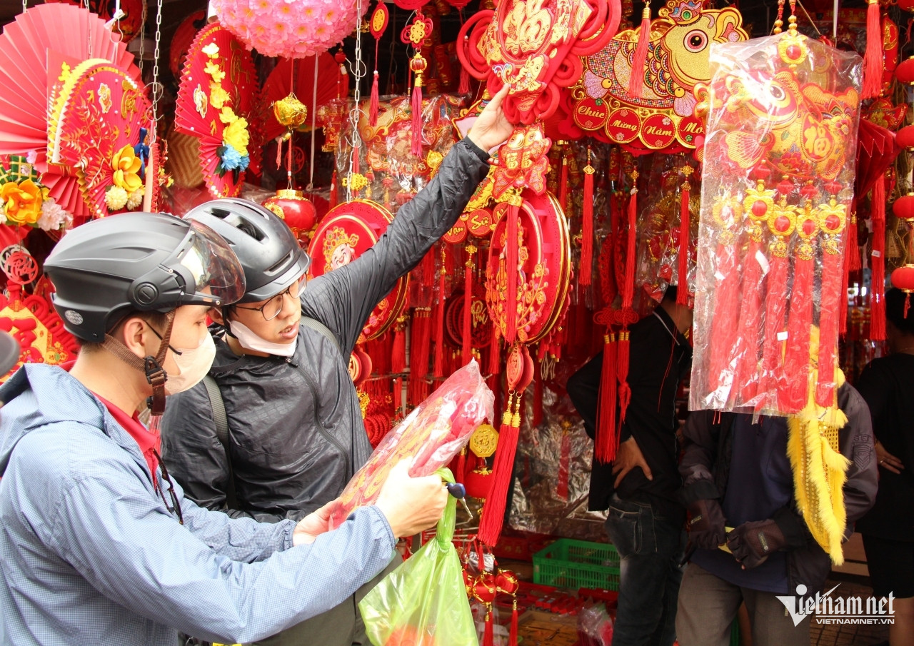 Đồ trang trí Tết nhuộm đỏ 'chợ may mắn', người dân đến mua, rước lộc về nhà
