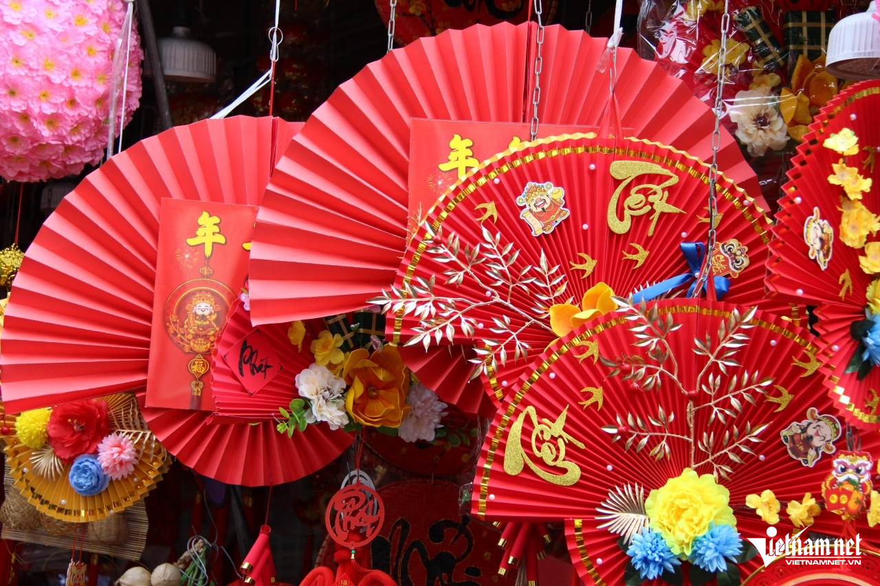 “Năm nay, khách chỉ đông vào mấy ngày sát Tết. Các mặt hàng được ưa chuộng nhất là dây liễn ông Thần Tài lắc đầu và quạt giấy đỏ. Các mẫu này có giá từ 200.000-800.000 đồng”, chị chia sẻ.