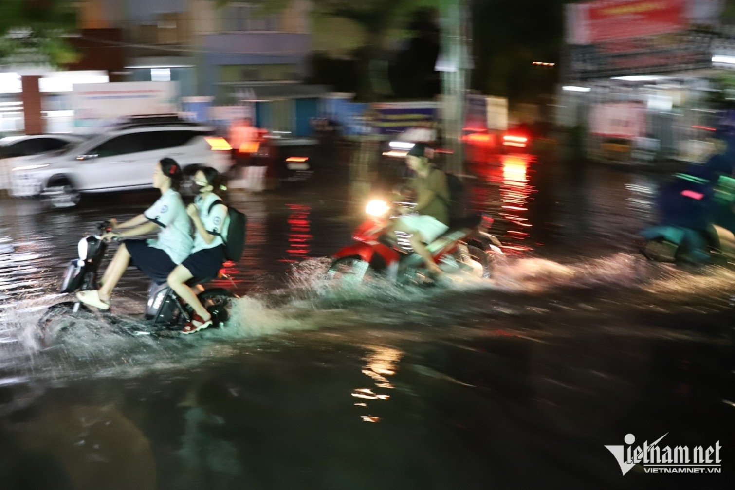 Do nước ngập từ 0,3-0,5m, ảnh hưởng nghiêm trọng đến việc đi lại của người dân. Mỗi lần ô tô chạy qua, mặt nước cuộn như sóng, tràn vào nhà dân hai bên đường.