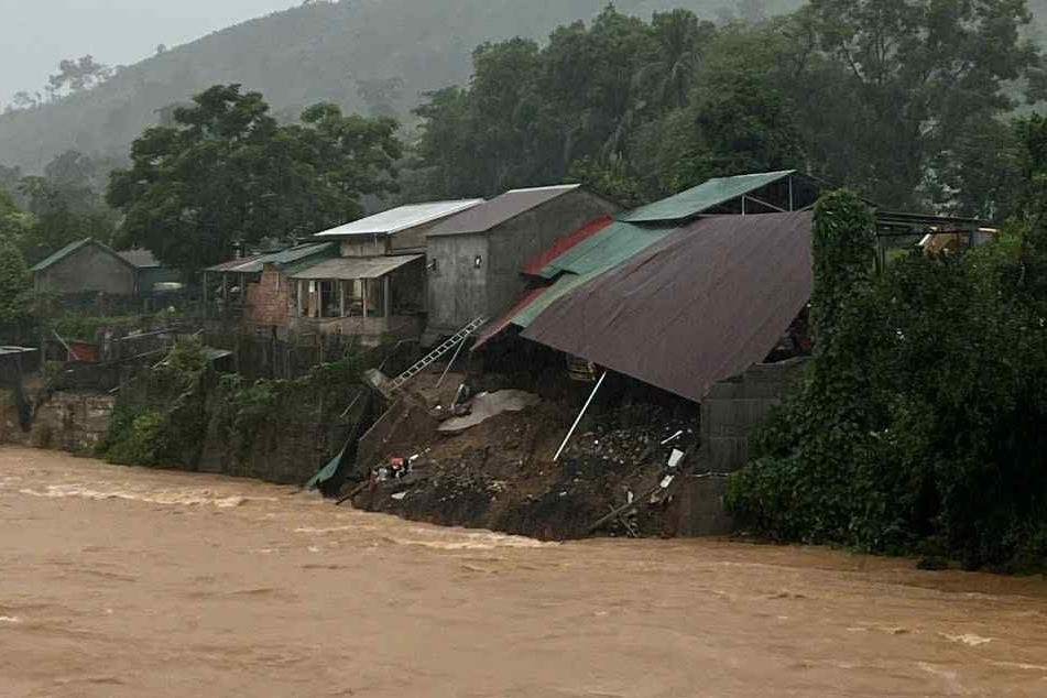 Ghi nhận tại hiện trường vào sáng 15/7, phần mặt đường bị sạt lở dài khoảng 30m, tạo nên vách sâu dựng đứng từ 5-10m. Có vị trí bị sạt lở sâu vào quá nửa mặt đường, khiến bề rộng chỉ còn hơn 2m. Sau khi gia cố bằng cọc bê tông và lốp xe làm rào chắn, mặt đường chỉ còn khoảng 1,2m.