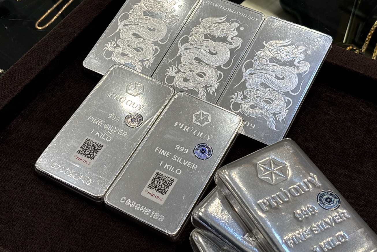 Giá bạc thỏi 999 loại 1kg tại Phú Quý chốt phiên tăng khoảng 210.000 đồng/kg ở cả chiều mua vào và bán ra so với đầu phiên, lên mức 99,386-102,453 triệu đồng/kg (mua vào - bán ra).