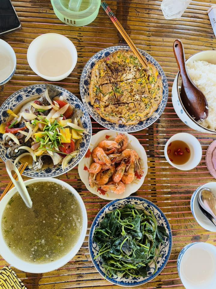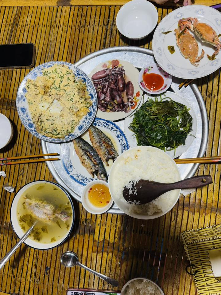 Ấy vậy mà, giấc ngủ ở làng chài lại ngon lạ thường, bởi xung quanh là vườn cây xanh mướt, không khí mát lành. Chủ nhà chất phác, bữa cơm giản dị nhưng đậm đà, với rau trái trong vườn và hải sản tươi rói vừa đánh bắt.