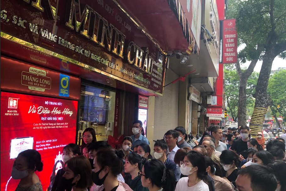 Nhân viên có nhiệm vụ đọc và phát số cho người dân tới xếp hàng, tất cả người dân tới mua vàng đều phải xuất trình căn cước công dân để được phục vụ. Theo khảo sát của phóng viên, đa số khách nhắm tới mặt hàng vàng tích trữ như vàng nhẫn, vàng miếng. Tuy nhiên tiệm vàng giới hạn mỗi người chỉ được mua 1 chỉ vàng.