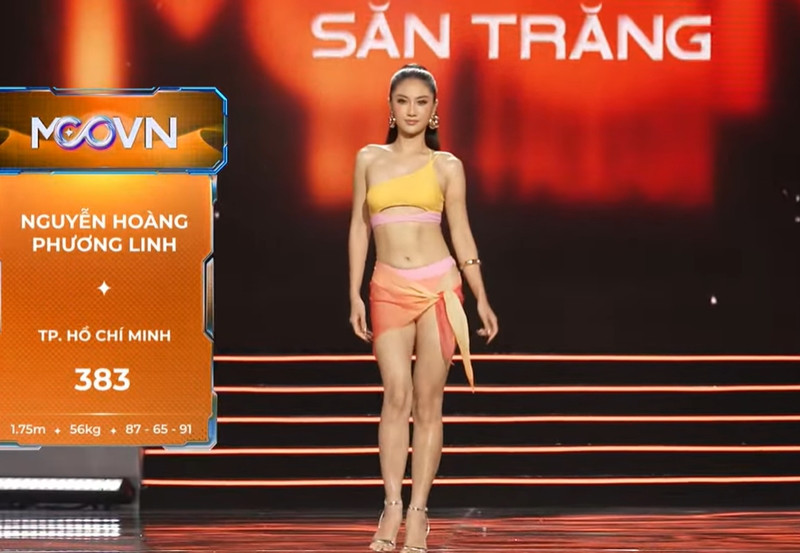 Các thí sinh xuất hiện với những thiết kế áo tắm đa dạng về màu sắc, từ những tông màu tươi sáng như xanh dương, xanh lá, vàng cam, hồng pastel đến những thiết kế phối màu gradient độc đáo. Đa số các thí sinh thể hiện sự tự tin và kinh nghiệm trong việc trình diễn, bước đi vững vàng và tương tác tốt với camera.