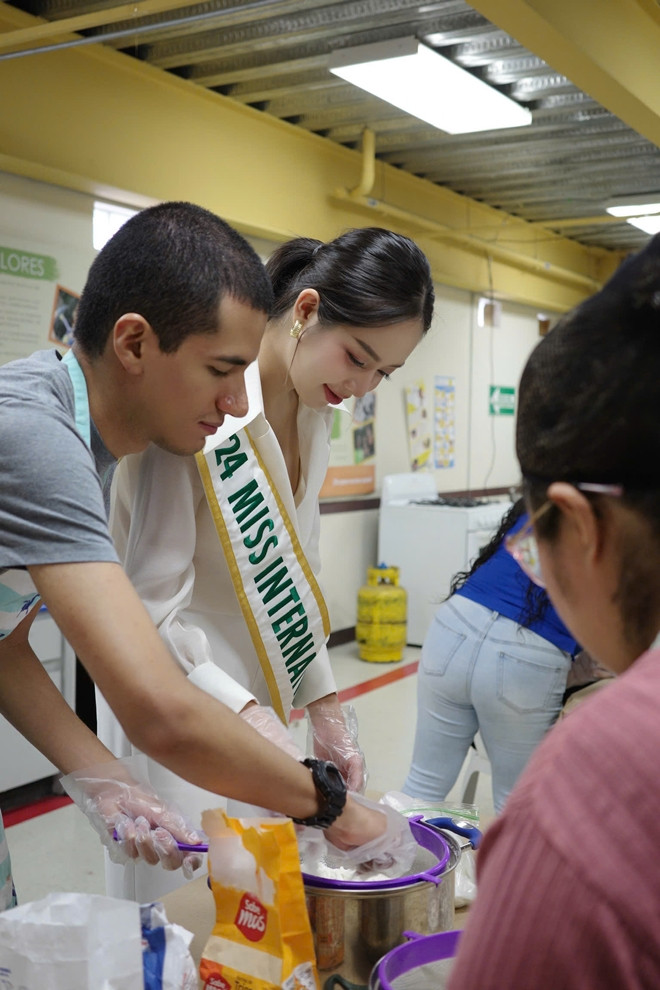 Đồng hành cùng Thanh Thủy trong hoạt động này còn có Á hậu 1 Miss International 2024 Camila Roca đến từ Bolivia và Miss International Guatemala 2024 Helen Morales.