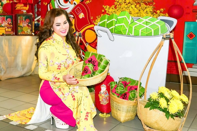Giữa cái lạnh se sắt của mùa đông California, trong một góc phố Little Saigon nhộn nhịp, hoa hậu Đoàn Thị Kim Hồng cặm cụi gói những chiếc bánh chưng xanh.