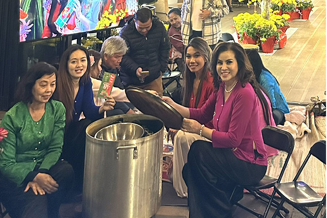 Năm nay, ngoài gói bánh chưng, bánh tét, Kim Hồng còn trang hoàng nhà cửa với hoa mai, hoa đào và những câu đối đỏ. Chị đi chùa cầu nguyện, không chỉ cho bản thân và gia đình, mà còn cho mọi người một năm mới an lành, hạnh phúc. Dù bận rộn công việc kinh doanh, chị vẫn gửi những phần quà Tết về các ngôi chùa tại Việt Nam, đồng thời trao tặng học bổng cho các em học sinh có hoàn cảnh khó khăn tại TPHCM và các tỉnh lân cận.