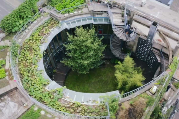 Muốn có một cuộc sống gần với thiên nhiên nhất có thể, gia chủ đã xây ngôi nhà có kết cấu, hình dáng vô cùng đặc biệt: Ngoài vuông trong tròn.
