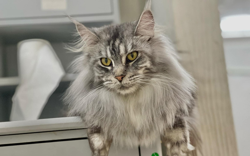 Trong một lần lướt Facebook, Trinh tình cờ thấy hình ảnh một chú mèo “khổng lồ” với màu lông lạ và gương mặt rất ngầu. Cô tìm hiểu thì biết, đó là giống mèo Maine Coon (mèo nhà khổng lồ), chưa phổ biến ở Việt Nam.