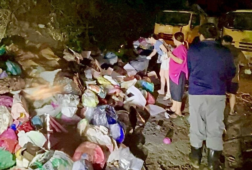 Nhận tin báo, ông Hoa Bách Vạn - Trạm trưởng Trạm trung chuyển rác Ba Bắc - cùng 5 nhân viên đã lập tức dừng toàn bộ quy trình xử lý. Chiếc xe tải chở 5 tấn rác chuẩn bị đưa đi lò đốt cũng buộc phải dừng lại.