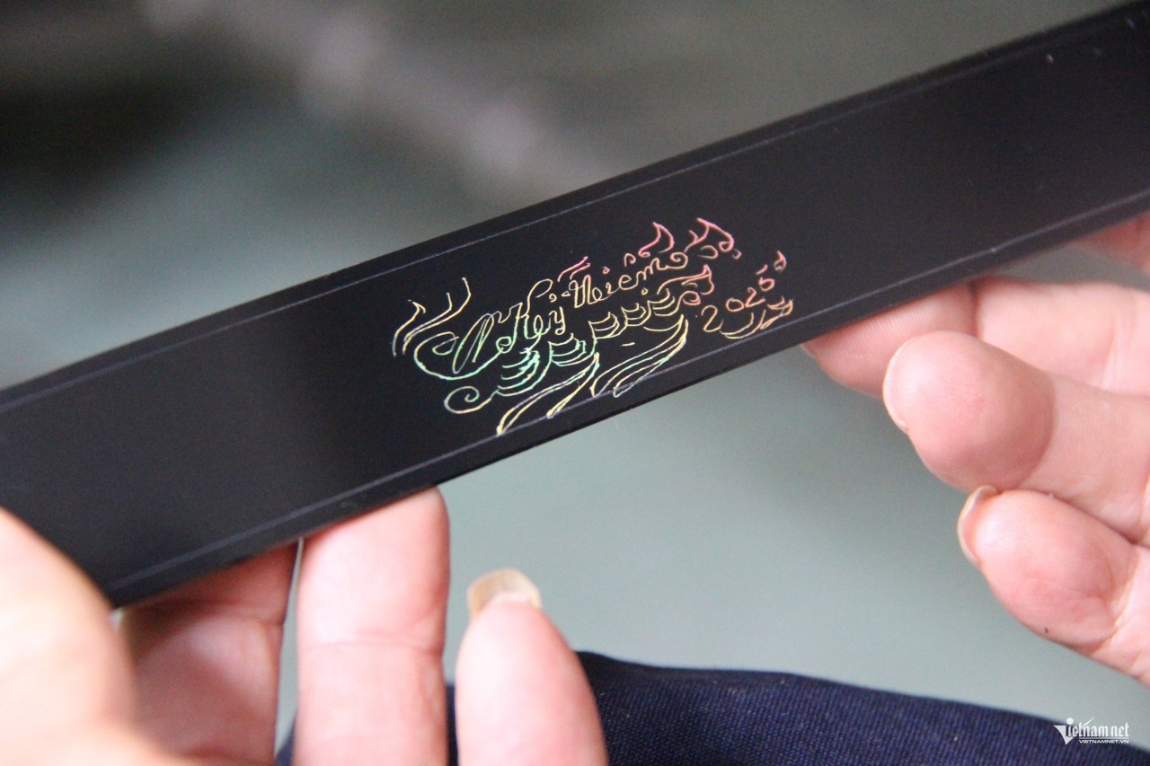Ông tâm sự: “Nghề này mai một dần, không còn mấy ai làm nữa. Tôi bây giờ đắt hàng lắm cũng chỉ khắc được 20-25 cái thước, bút hoặc móc khóa/ngày, thu về 200.000-250.000 đồng.