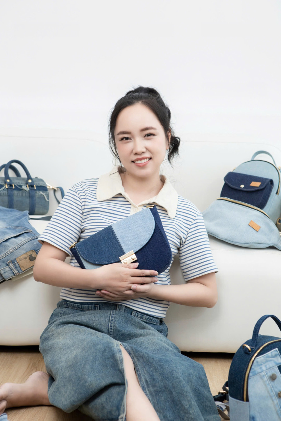 “Mỗi chiếc túi đều là sản phẩm độc đáo, là của riêng, không có cái nào giống cái nào vì nguyên liệu từ đồ jean cũ luôn khác nhau. Điều đó giúp mình thỏa sức sáng tạo, biến những món đồ tưởng chừng bỏ đi thành sản phẩm có giá trị,” cô hào hứng.