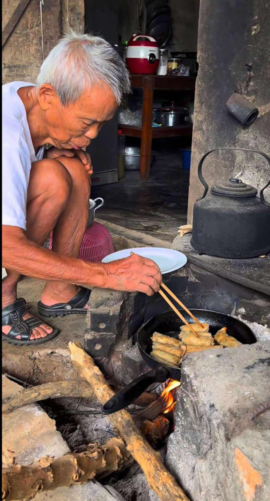 Ông bà U90 ở Nghệ An nấu cơm bên bếp củi khiến triệu người rưng rưng