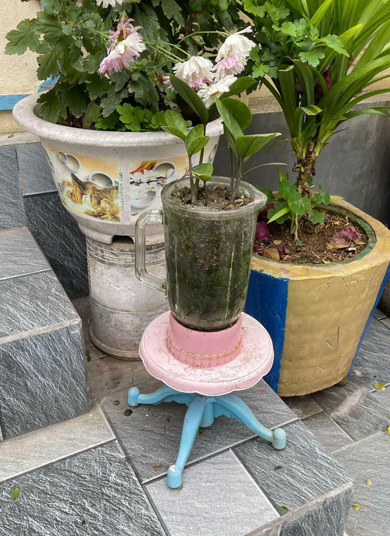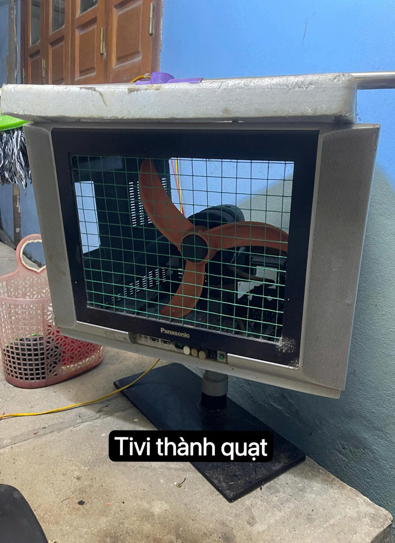 Kèm theo bài viết là loạt ảnh chụp lại những sản phẩm độc lạ được tái chế từ đồ dùng cũ, hỏng hóc trong gia đình như: Chiếc quạt được làm từ TV, bếp than tổ ong được làm từ lò vi sóng, chiếc đèn được làm từ quạt, chậu cây được làm từ TV,...