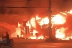 Cháy dữ dội tại cửa hàng kem cạnh Quốc lộ 18, lửa đỏ rực bốc cao