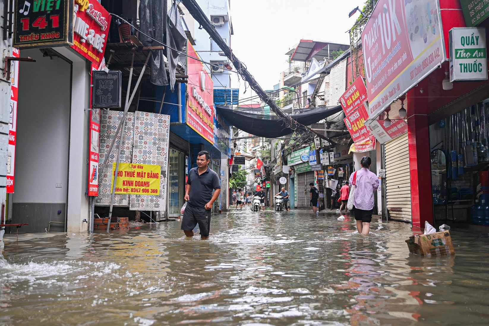 Biệt thự triệu đô Hà Nội hóa 'ốc đảo' sau mưa, thuyền bè tấp nập