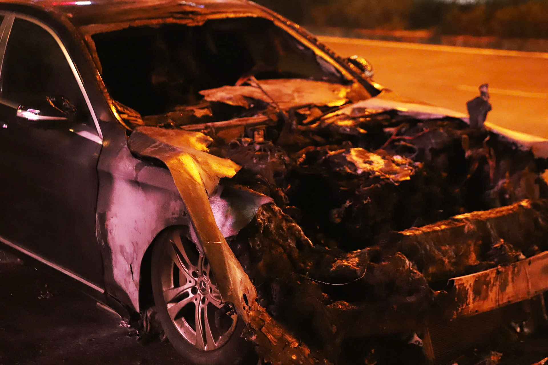 Ô tô Mercedes S450 cháy dữ dội trên phố ở Hà Nội