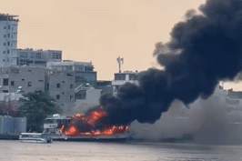 Cháy du thuyền trên sông Sài Gòn, lửa đỏ rực kèm khói đen bốc cao