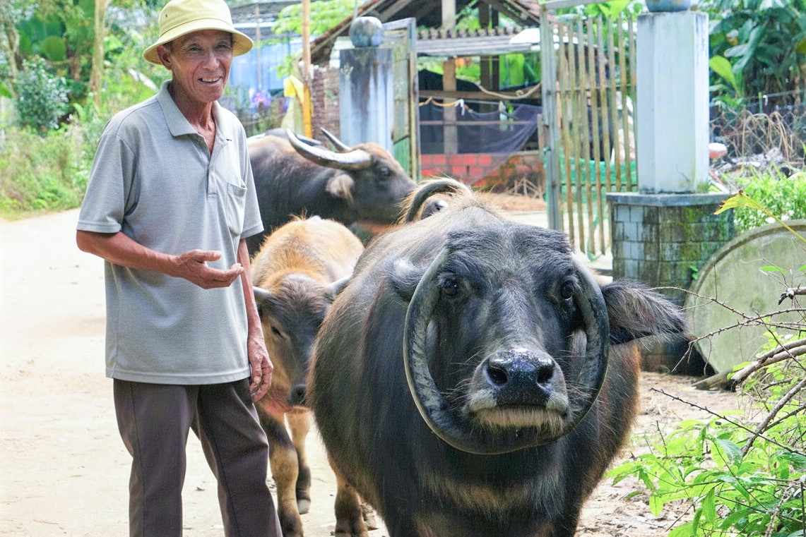 Con trâu có cặp sừng mọc ngược hiếm gặp, giúp lão nông xây nhà, tậu xe
