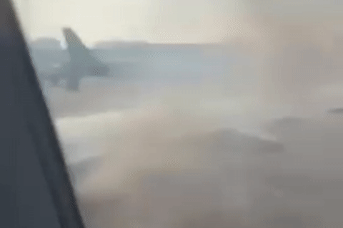Máy bay bốc khói ở sân bay Tân Sơn Nhất khi chuẩn bị cất cánh ra Hà Nội