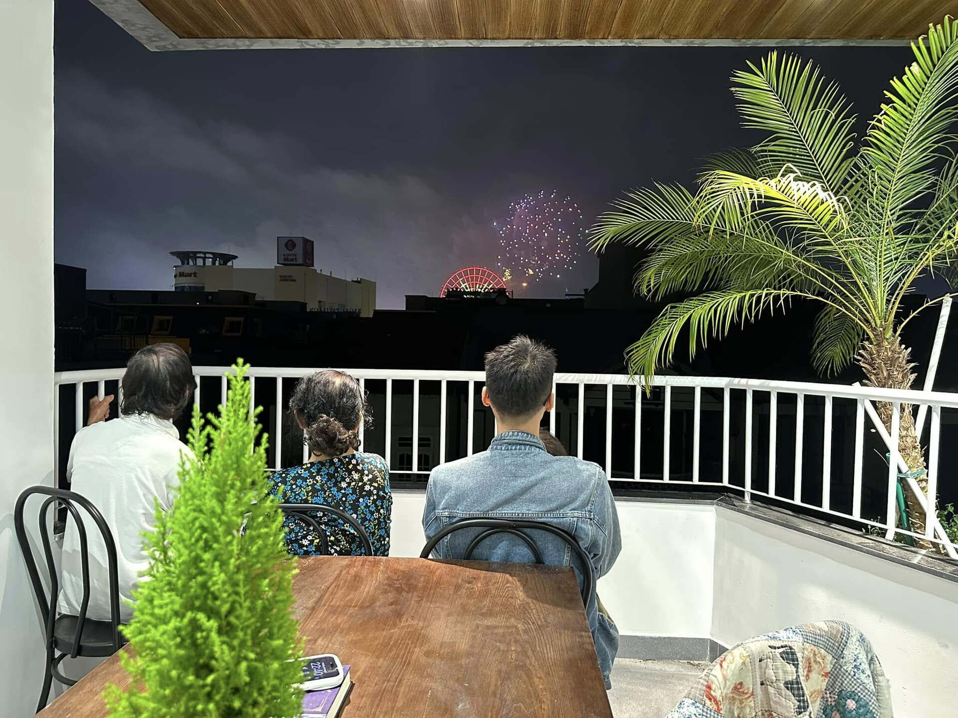 Tại tầng 4 còn có không gian làm tiệc nướng ngoài trời và ngắm pháo hoa.