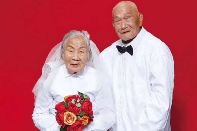 Khoảnh khắc đẹp trong lễ kỷ niệm 70 năm bên nhau của đôi vợ chồng lớn tuổi. Nguồn: Ngọc M
