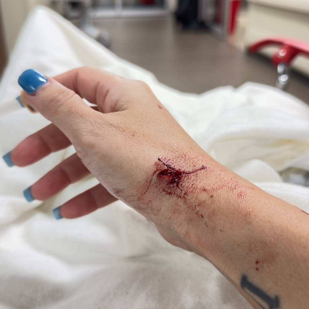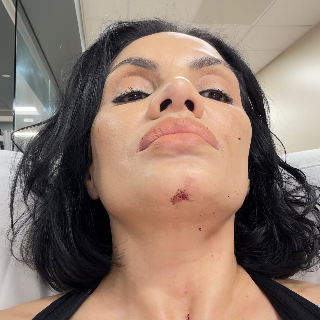 Trên Instagram, Nina chia sẻ loạt ảnh chụp những vết thương trên mặt và tay, xúc động viết: “Chiếc xe lao đến bất ngờ, ngay lúc tôi đang cắn miếng bánh mì cá hồi nhưng chúng tôi đã may mắn vượt qua”. Patrick cũng bị bầm ở ngực và mặt nhưng trấn an: “Còn sống đã là một phép màu”.